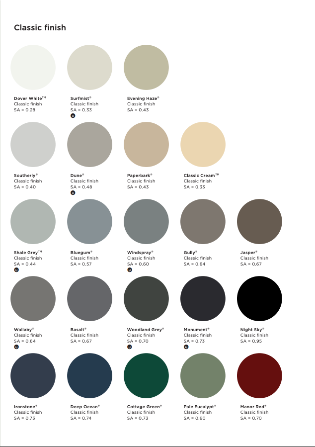COLORBOND® COLOUR OPTIONS